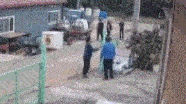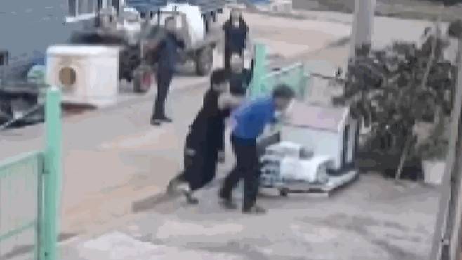 지난 13일 오후 전남 무안군의 한 주택가에서 목장갑을 착용한 중학생이 노인을 폭행하는 모습. JTBC 사건반장 갈무리